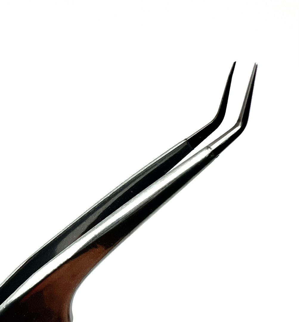 These tweezers are great for picking up single lashes, fanning your volumes, and isolating thicker lashes precisely!.